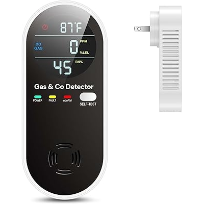 NICGOL 4 in 1 Upgraded Natural Gas Leak Detector and Carbon Monoxide Detectors, Dual Sensor Gas Leak Detector & Carbon Monoxide Detectors Plug in Temperature & Humidity for Home, RV Black