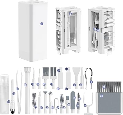 32-in-1 Multi-Functional Cleaning Kit for Electronics inlcuding Headphones,Mobile Phones,Computer,Monitor,Lens and etc, Compact and Portable Design, White