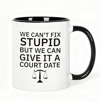Jogskeor We Cant Fix Stupid But We Can Give It a Court Date Coffee Mug 11oz, Lawyer Gifts for Men Women, Birthday Graduation Christmas Gifts for Lawyer Law Student Attorney Paralegal